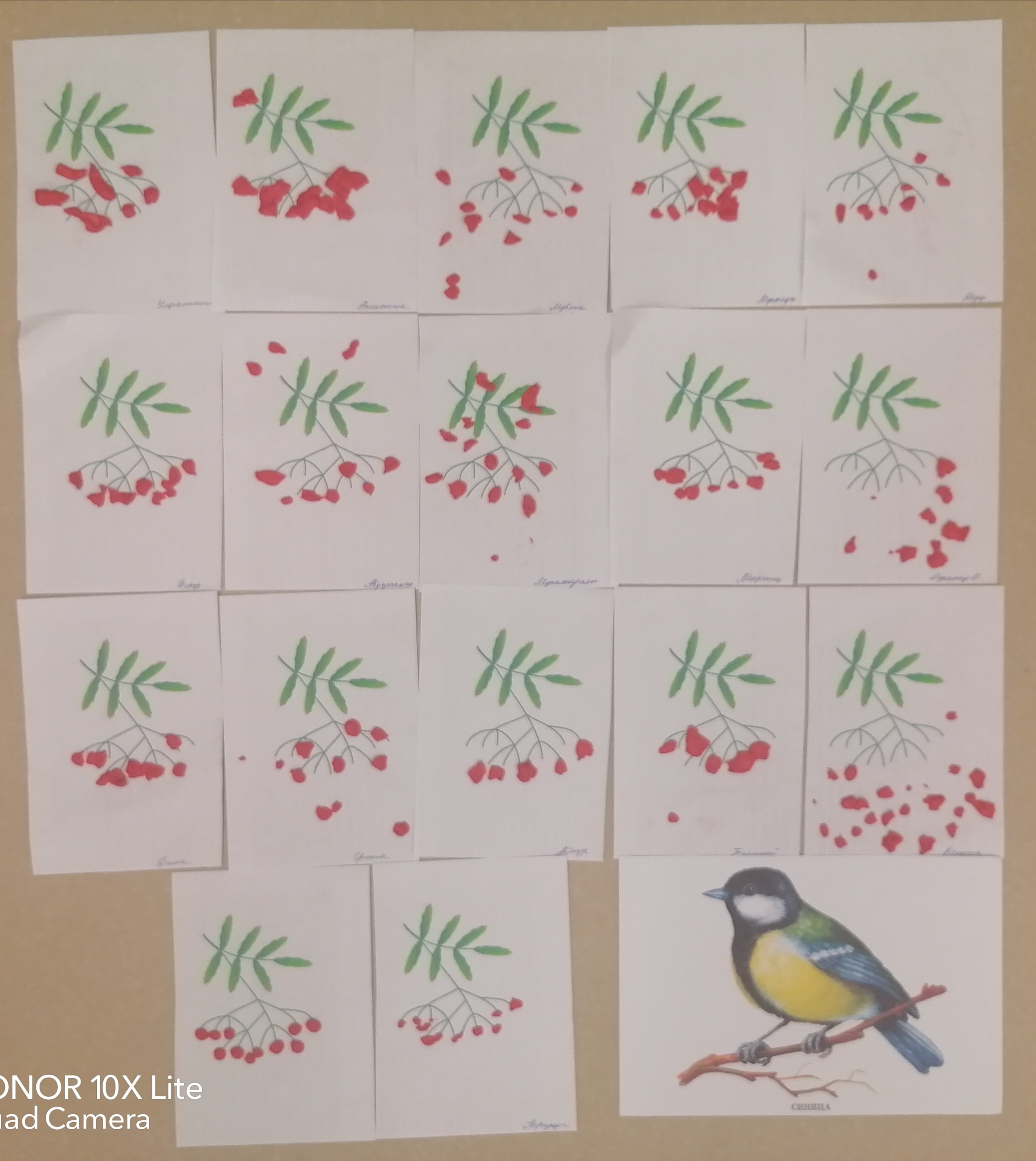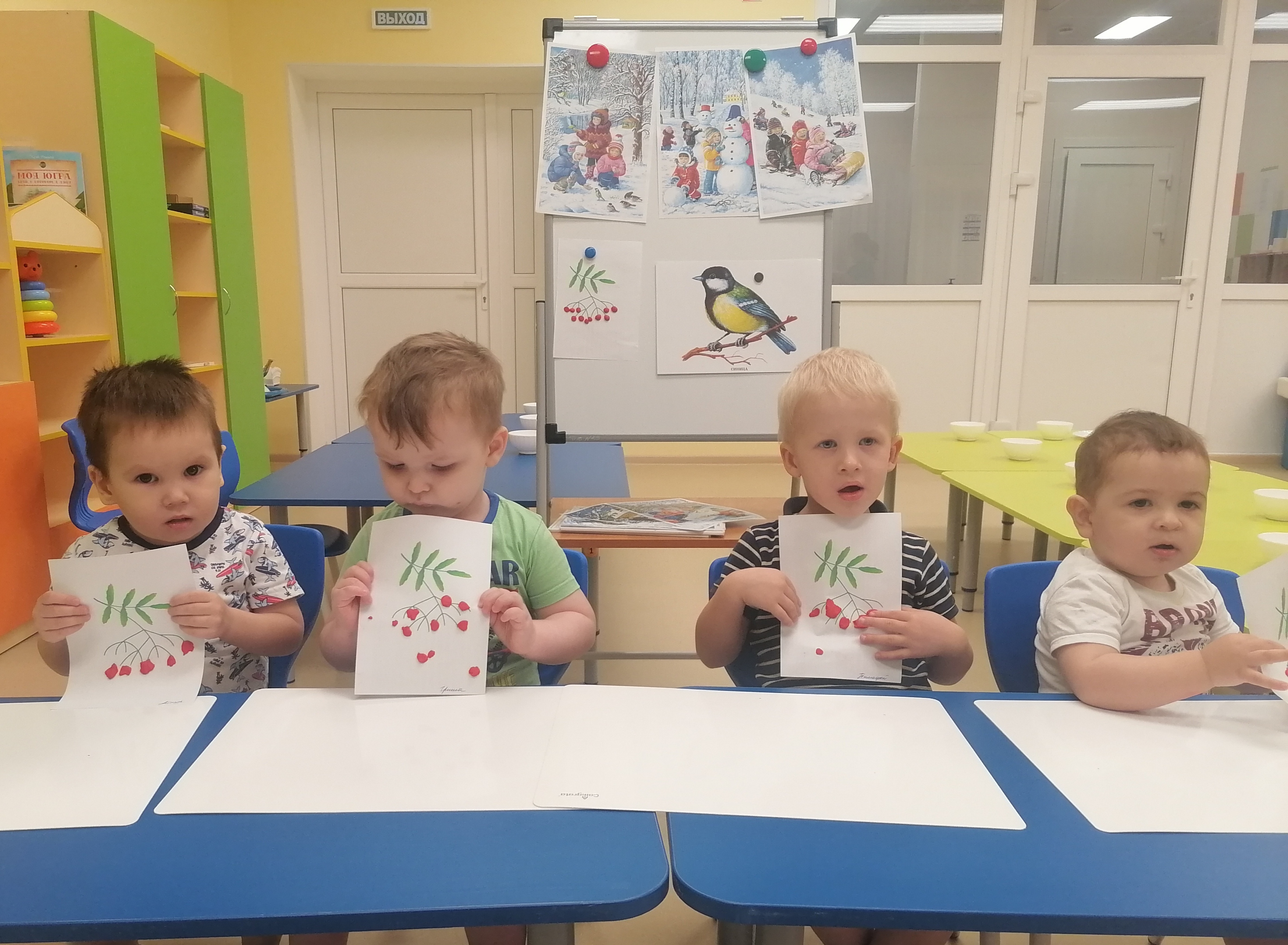 творческое занятие: дети лепили «Гроздь рябины», лакомство для синички,